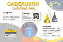 Les bij uw eigen club is uiteraard ook mogelijk mits toestemming van de club. CADEAUBON? Wil je iemand verrassen met een padel les? Dat kan. Alle bedragen zijn mogelijk. De bonnen zijn altijd voor max 4 personen. Dus tot 4 maal FUN. Inclusief huur terrein gedurende anderhalf uur. voorbeeld: Initiatie 45 min: € 45 - 1 uur les: € 55 ![]() |